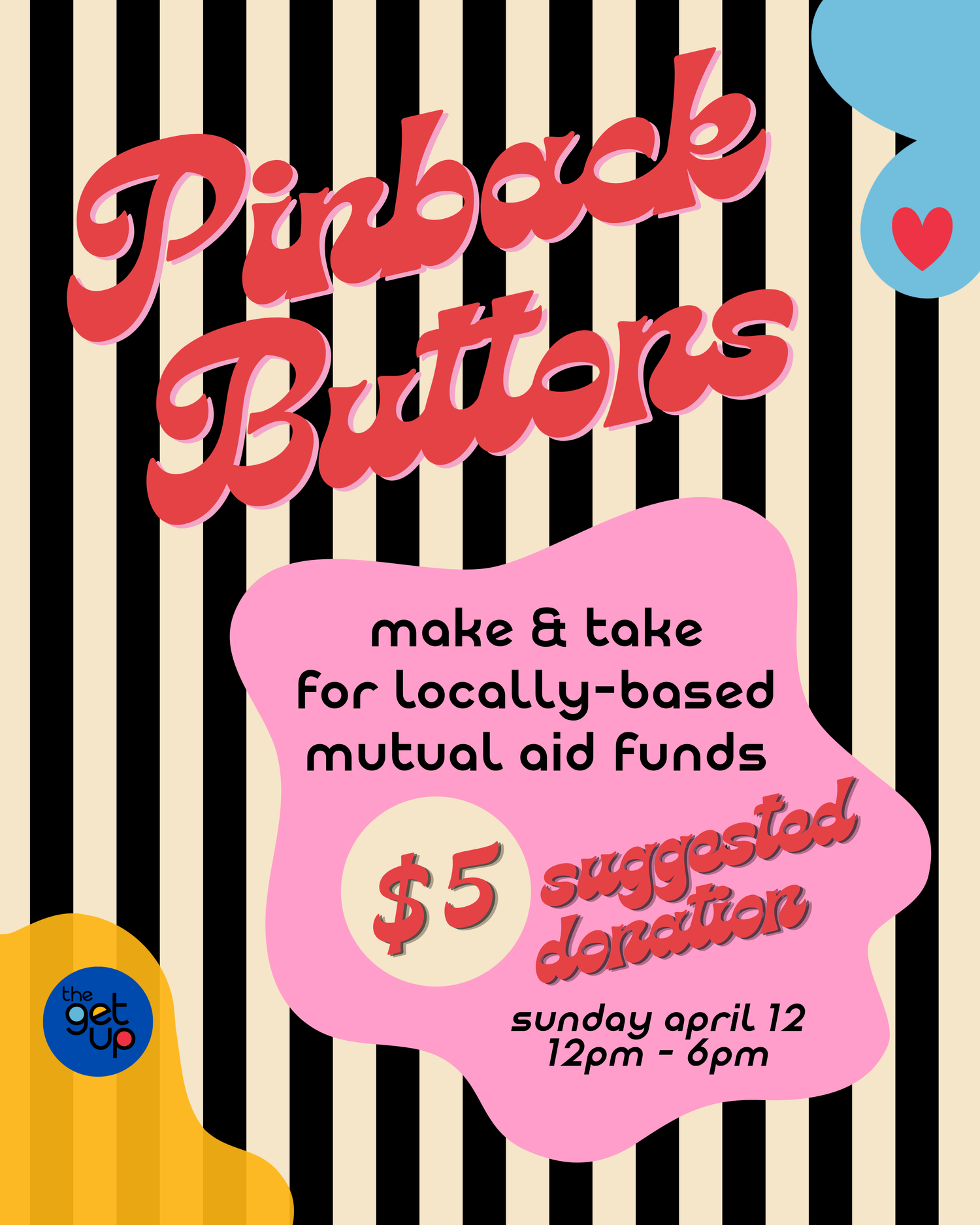Make and take a 2.25" pinback button out of vintage and recycled materials. All proceeds to benefit locally-based mutual aid funds.