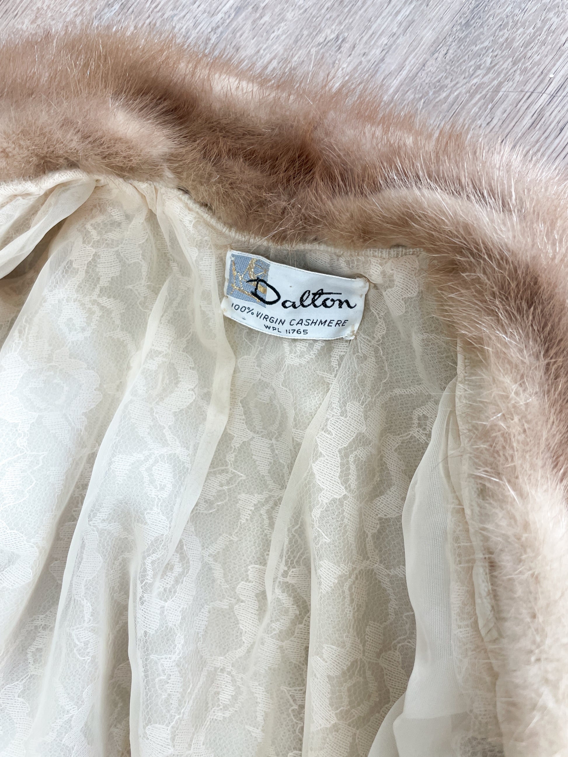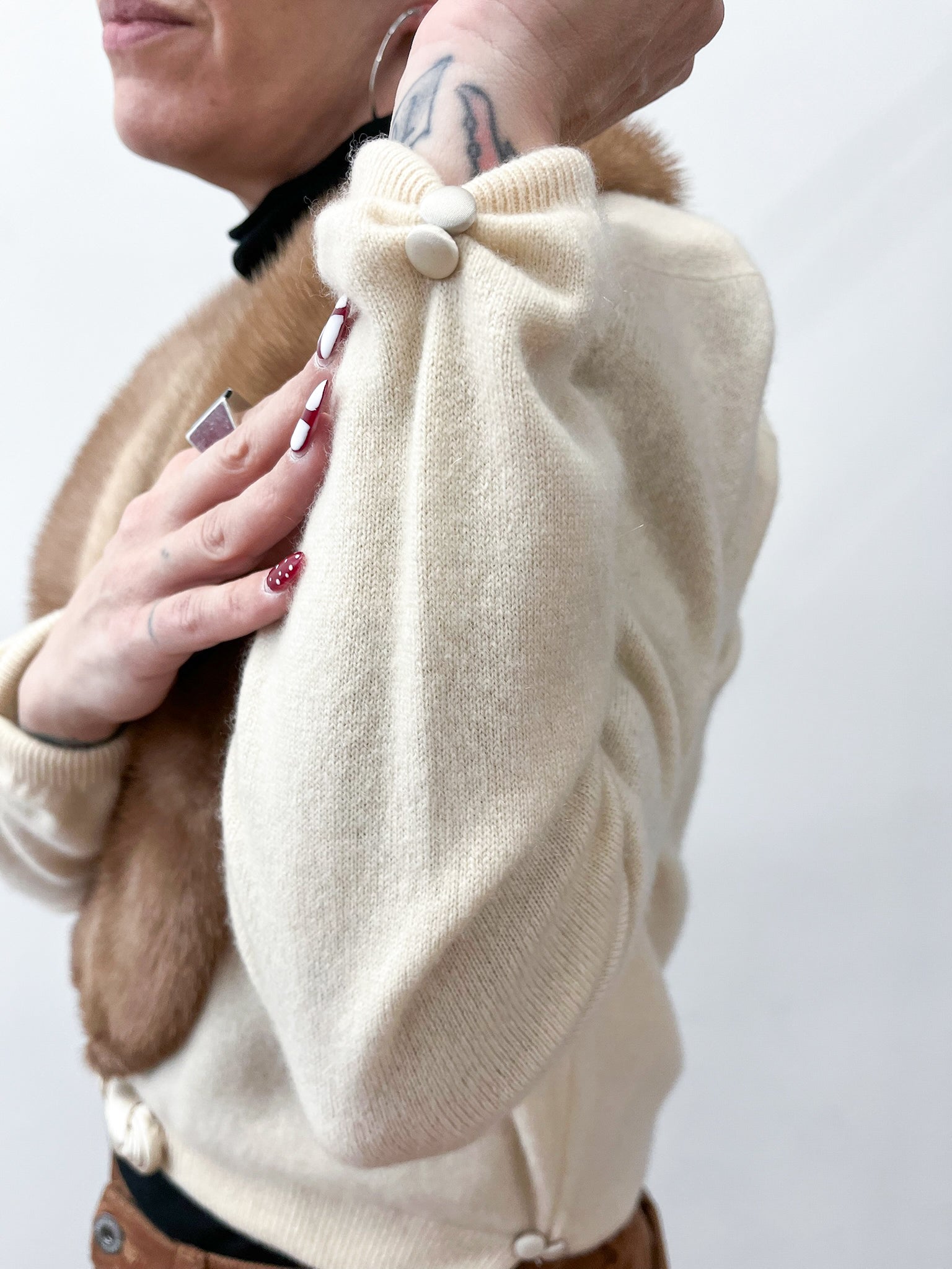 1950s Vintage Cream 100% Pure Virgin Cashmere Cardigan with Mink Collar