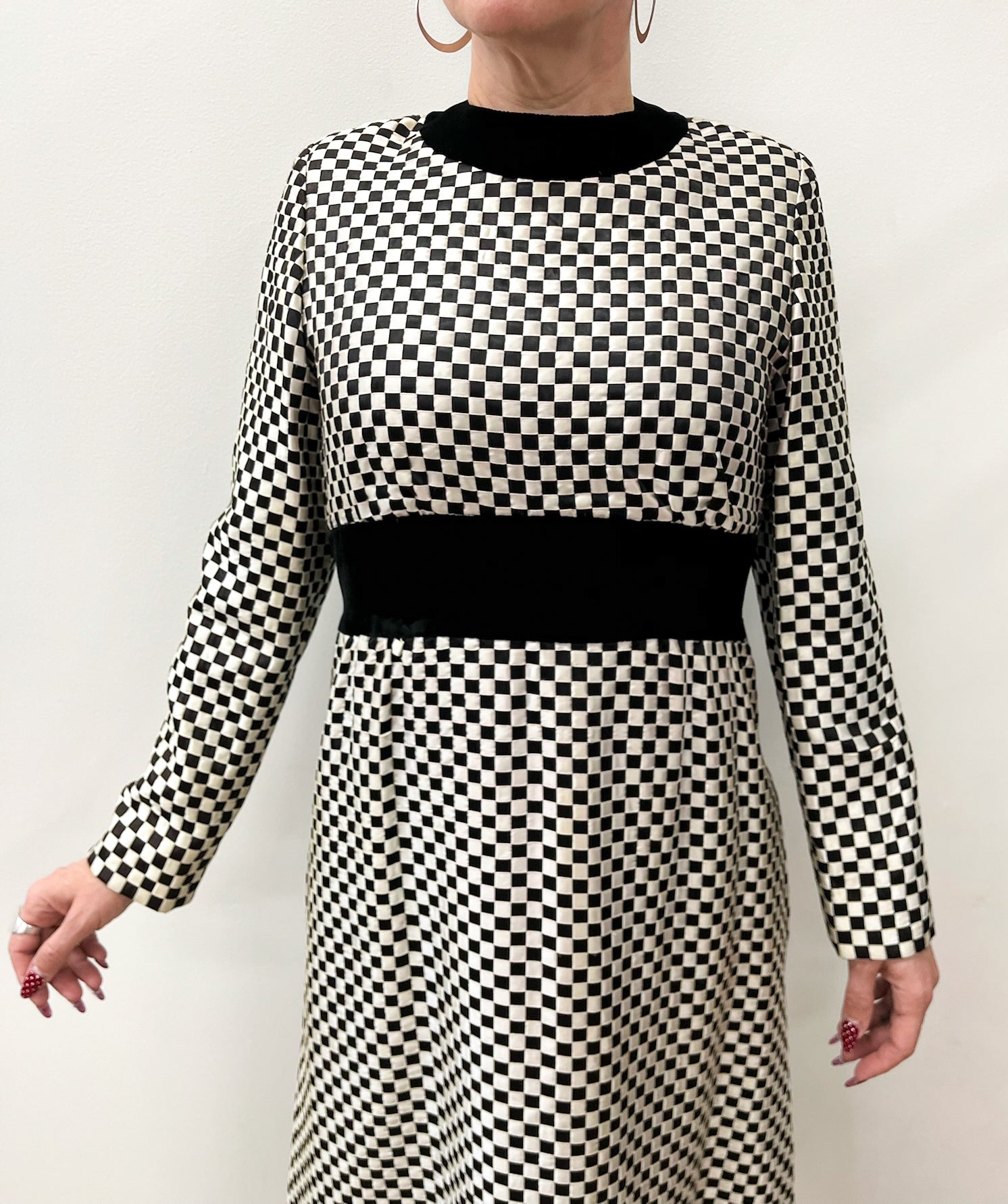 1960s Vintage Elinor Simmons for Malcolm Starr Black and White Ribbon Checkerboard Dress - RARE!