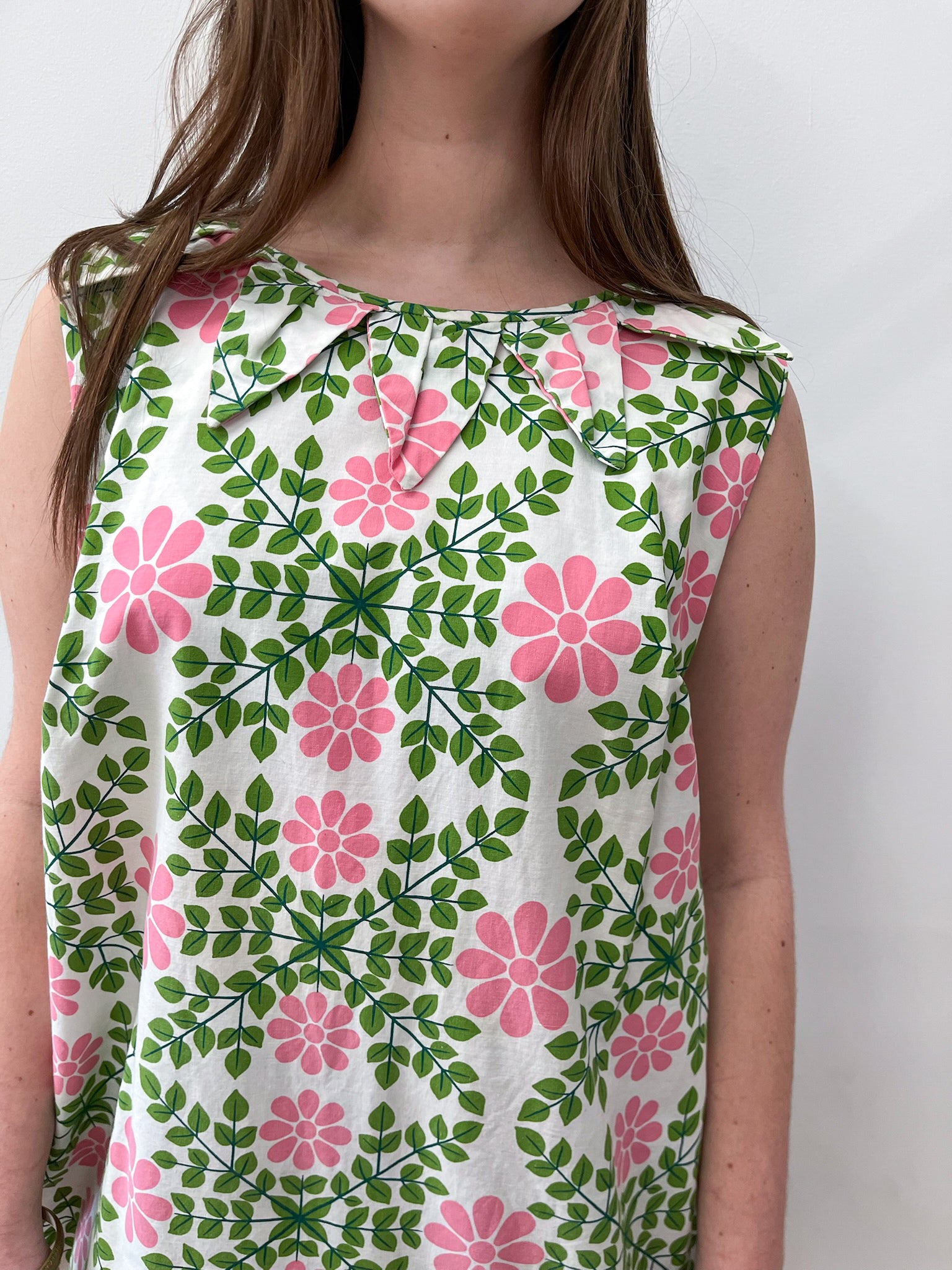 1960s Vintage Floral Kaleidoscope Cotton Petal Collar Mod Shift Dress