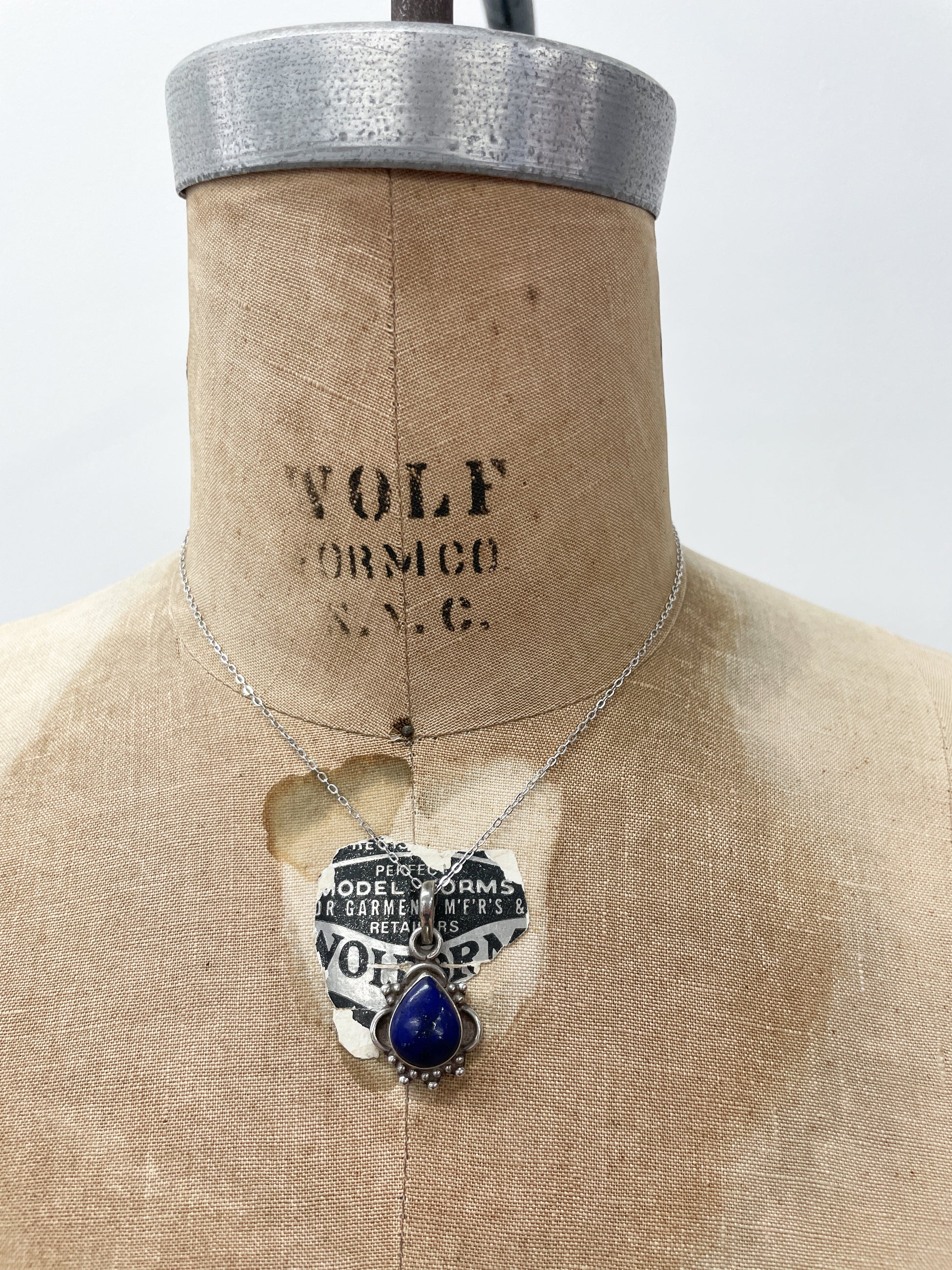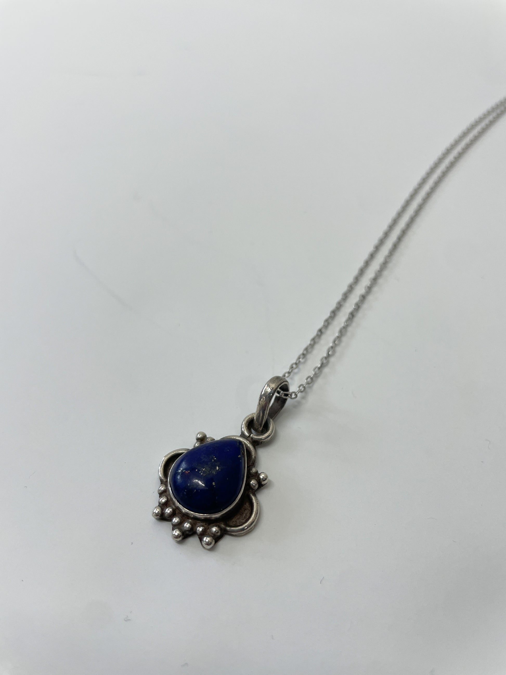 1970s Vintage Sterling and Lapis Teardrop Necklace