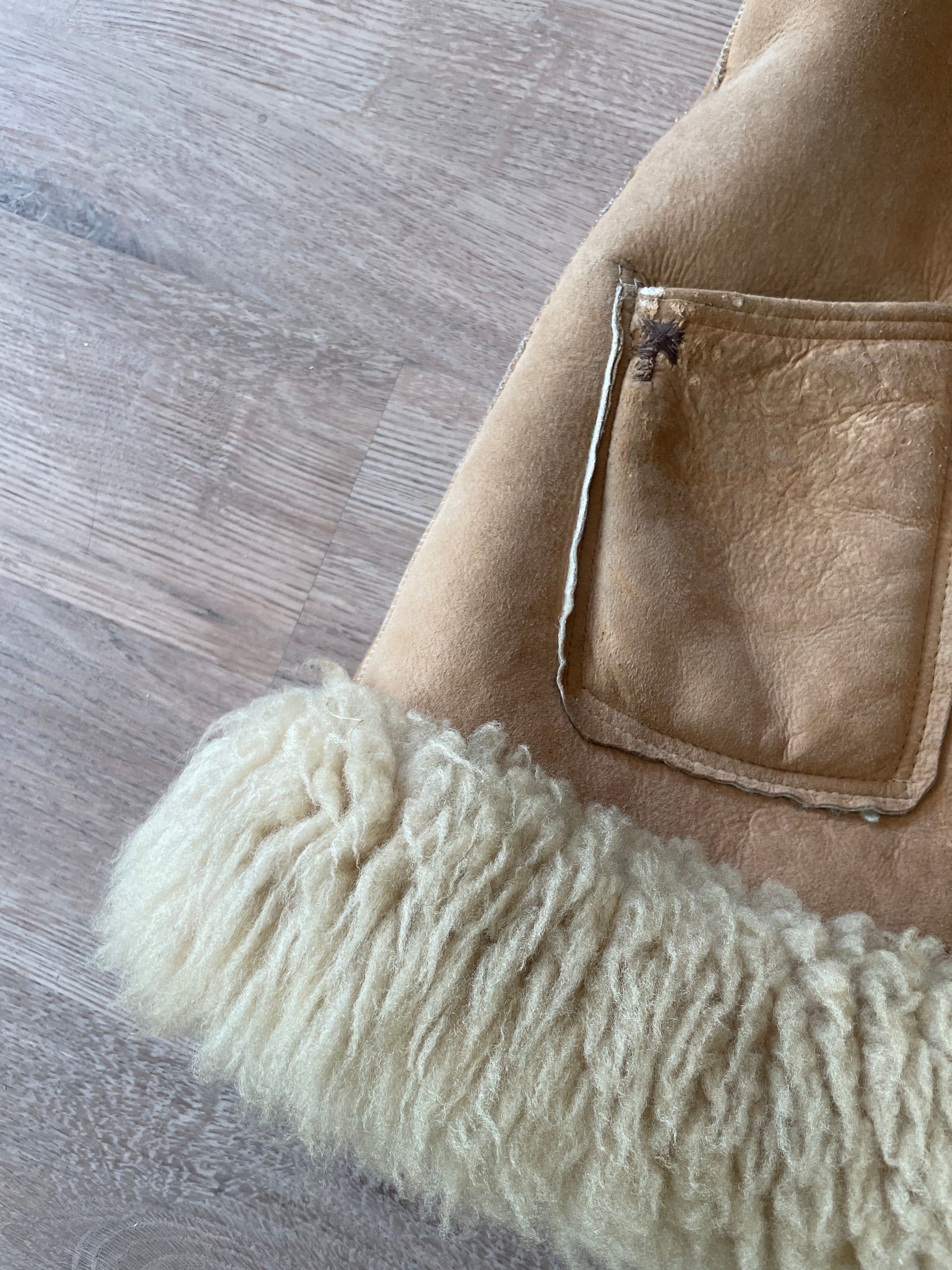 A classic 1970s Penny Lane coat in the softest suede leather with super warm thick shearling on the interior.