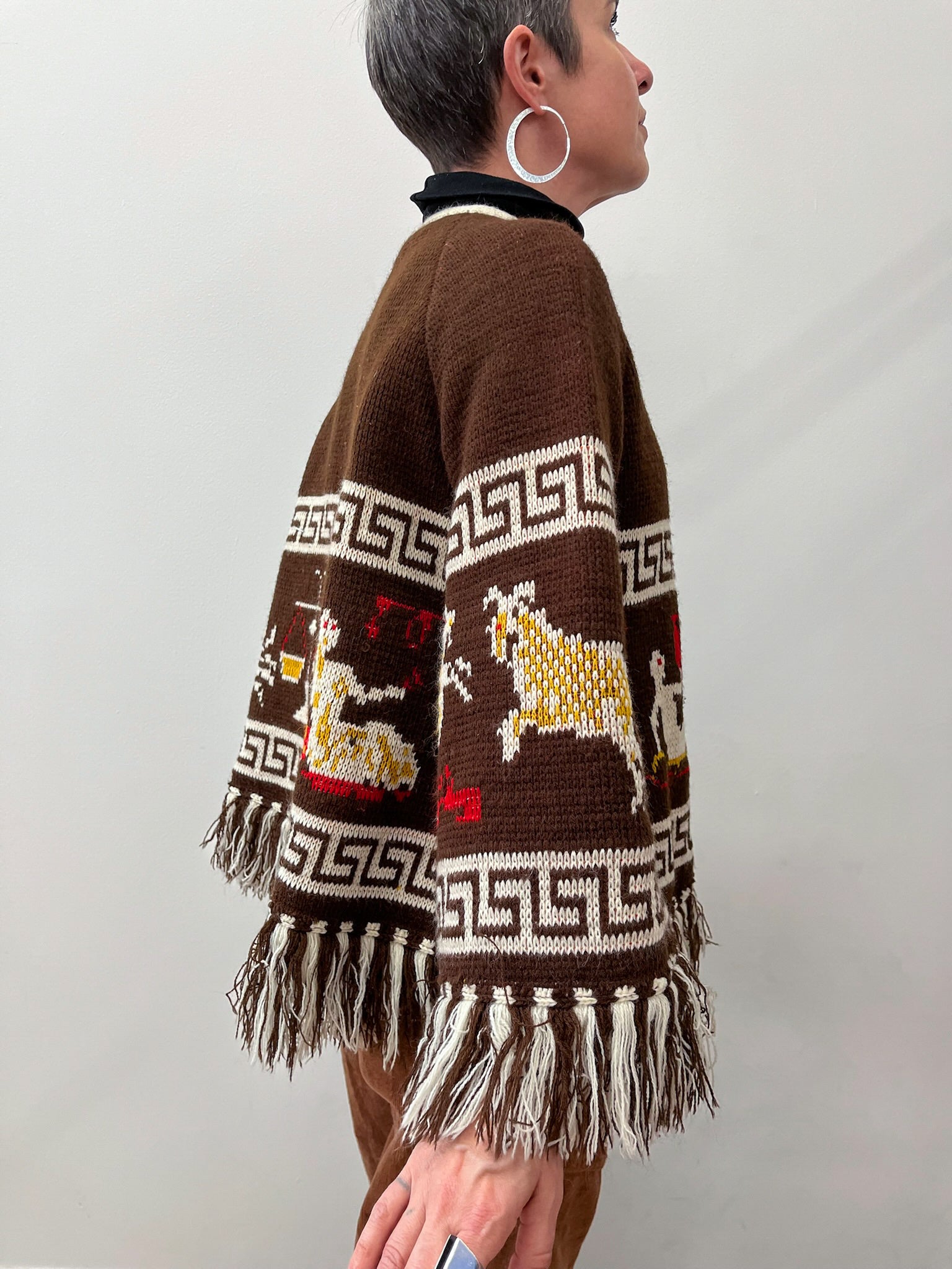 1970s Vintage Zodiac Astrology Knit Bell Sleeved Fringe Cardigan Sweater RARE!