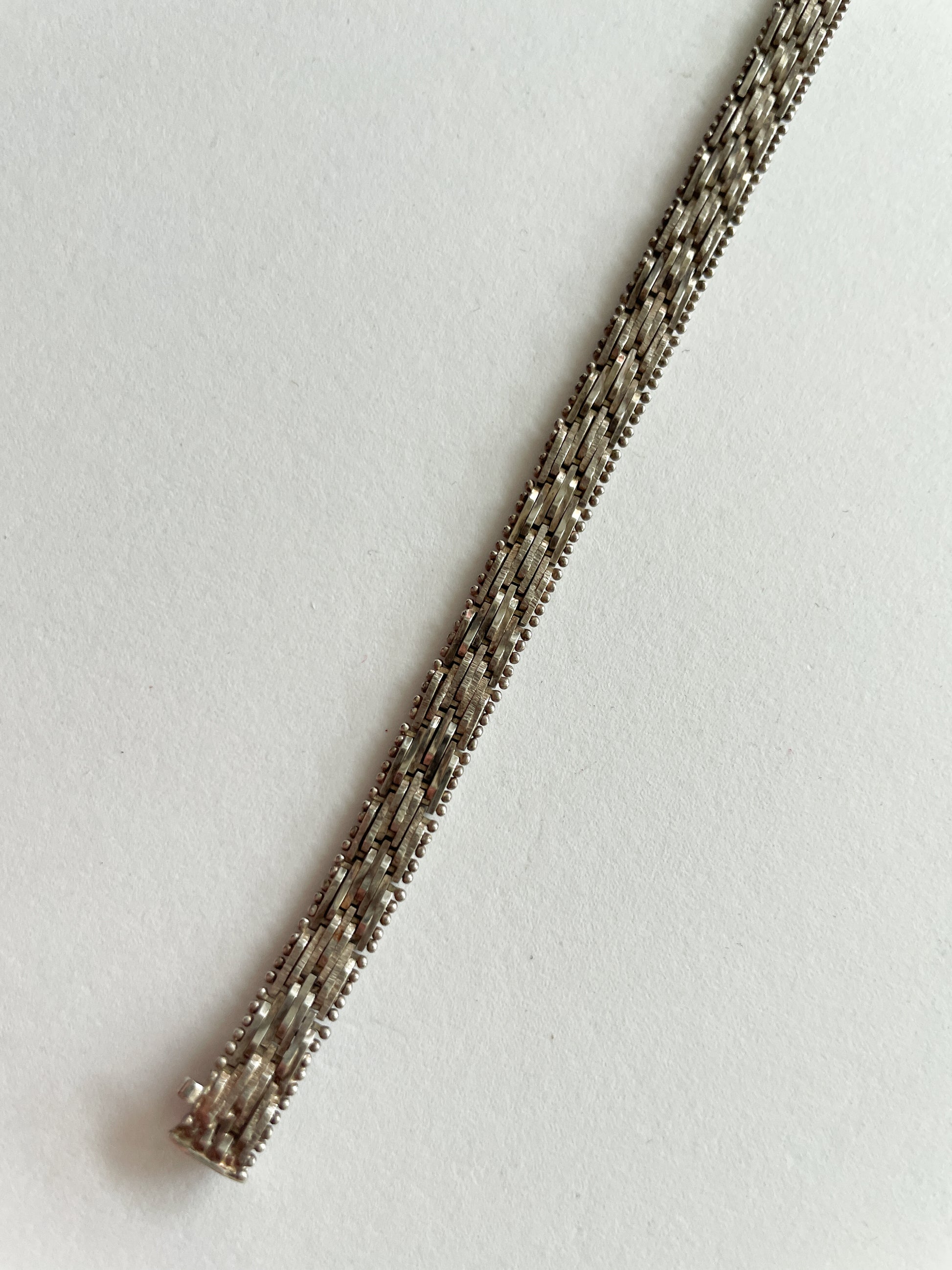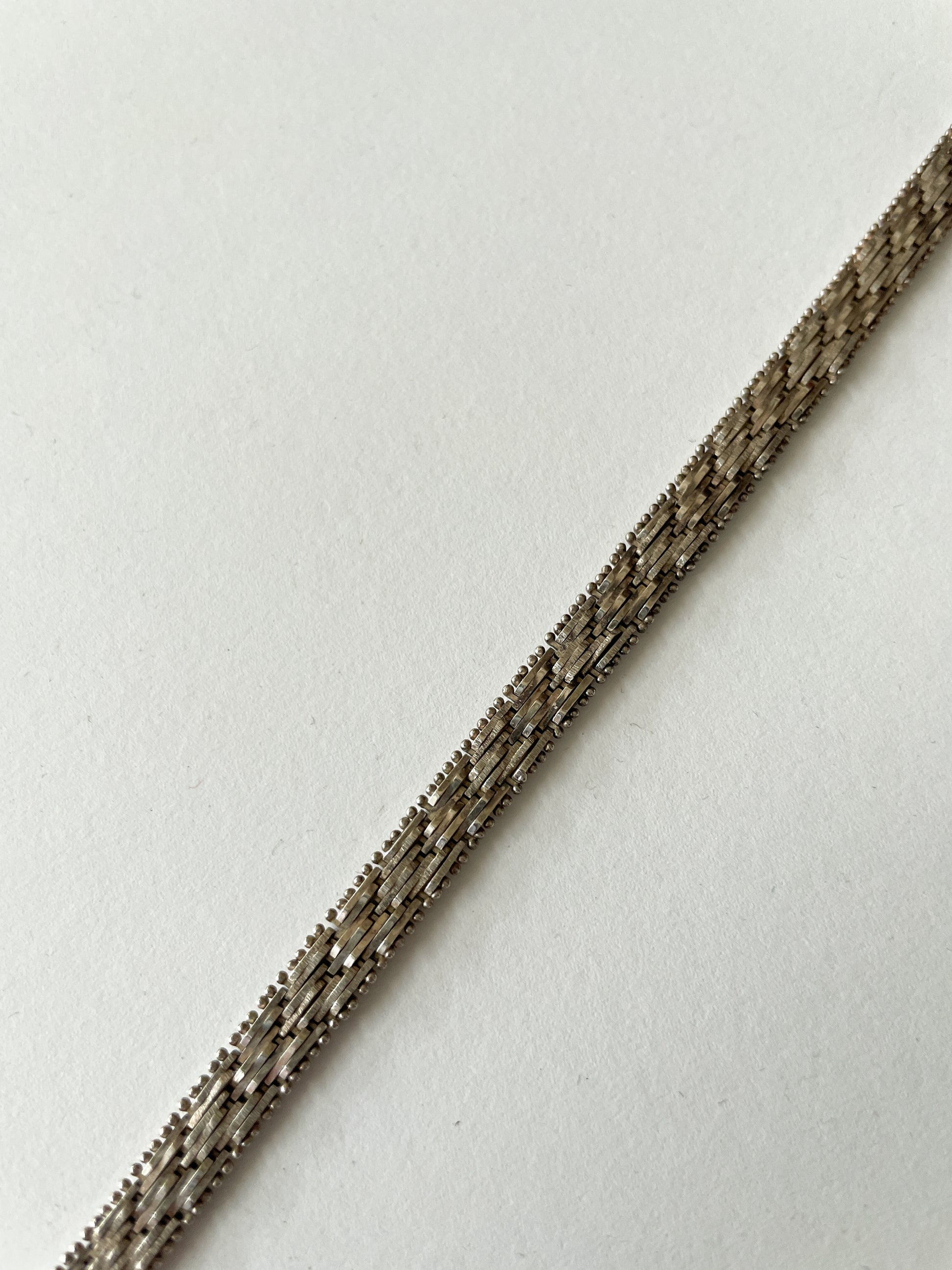 Thin, banded woven Riccio textured Sterling bracelet, with box closure. Made in Italy.