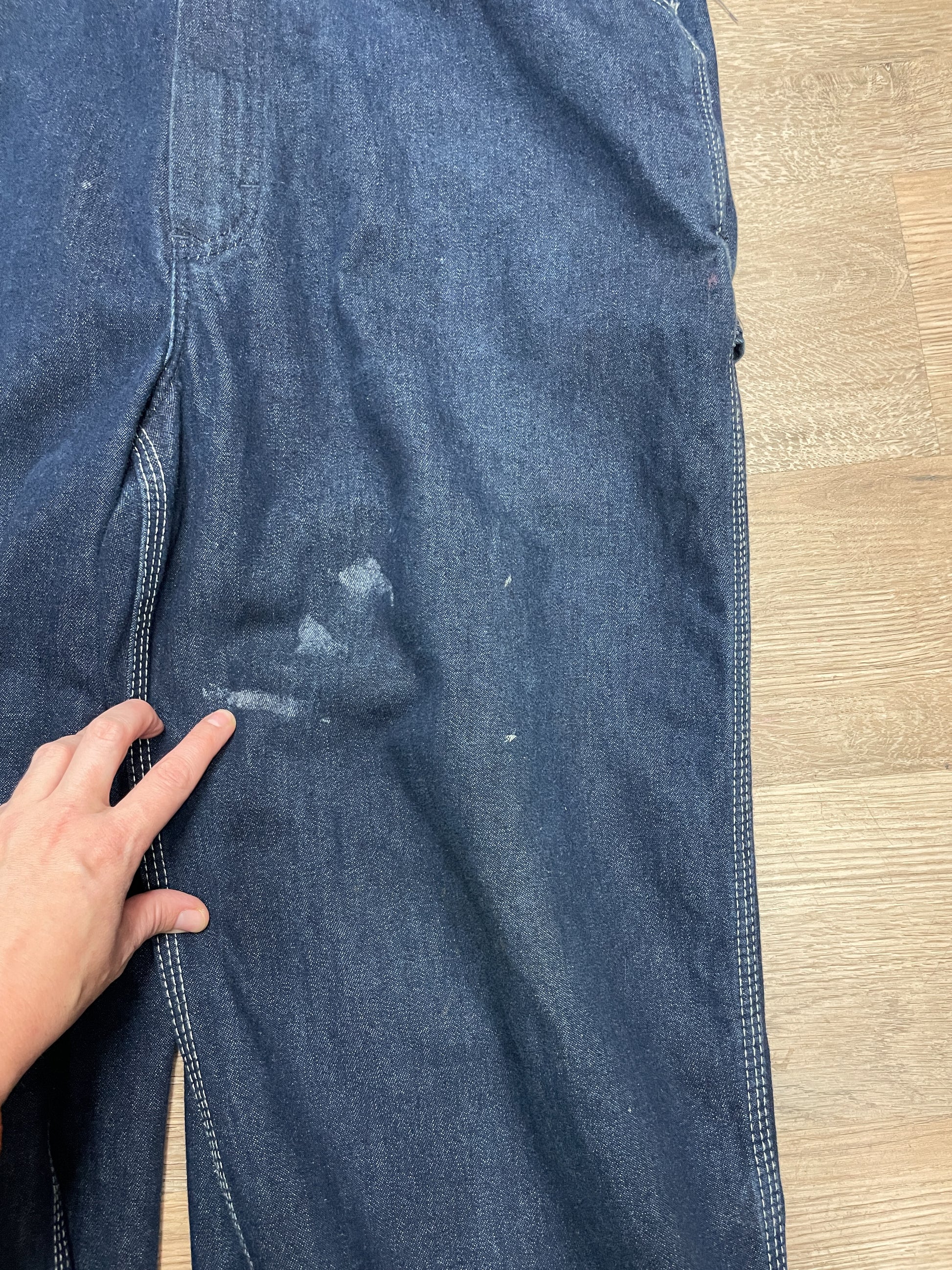 Condition: Great; structrually fantastic but does have 3 paint (?) stains that did not come out with laundering near the crotch. See flat lay / close up pics. Priced gently / accordingly.