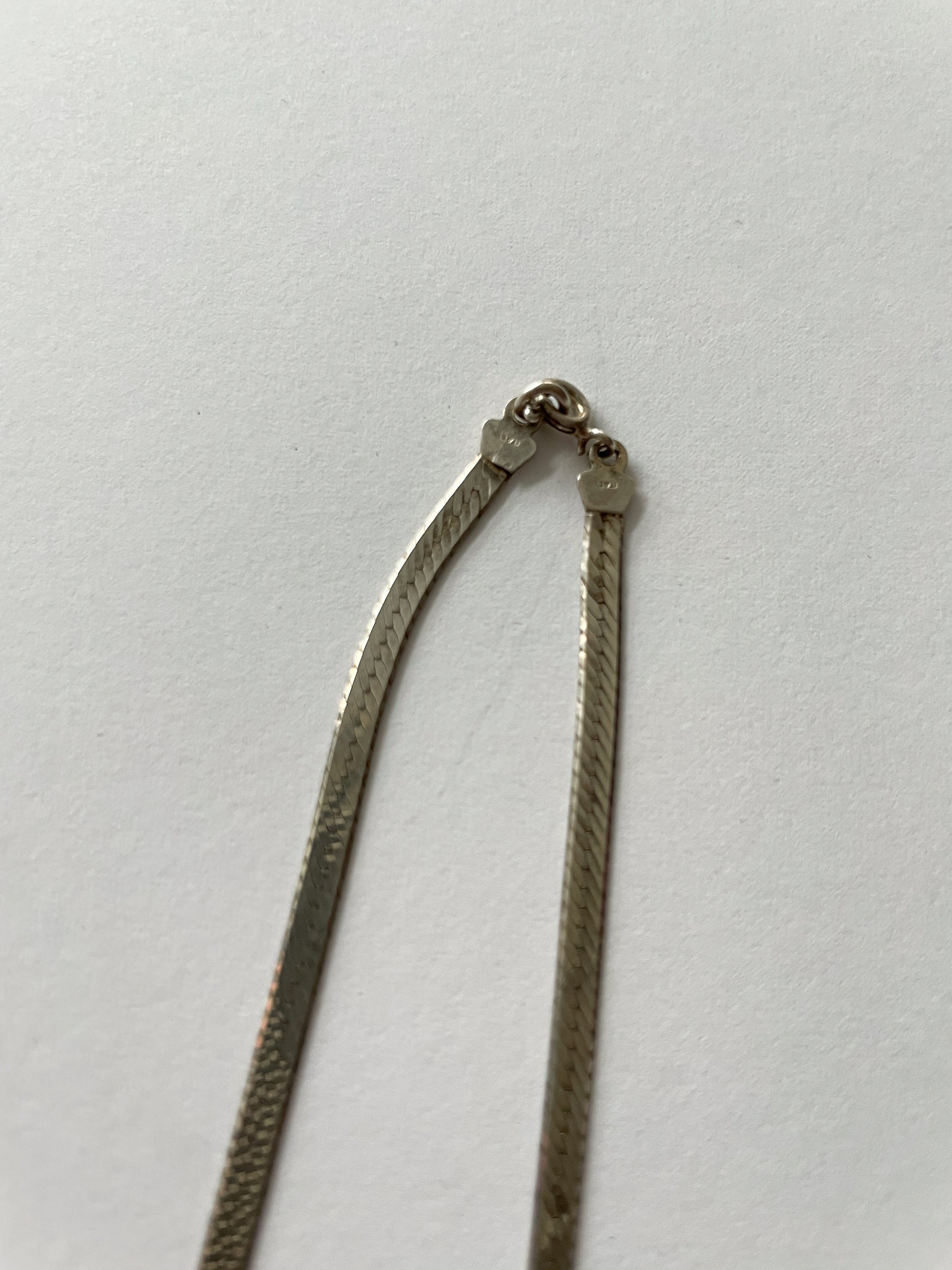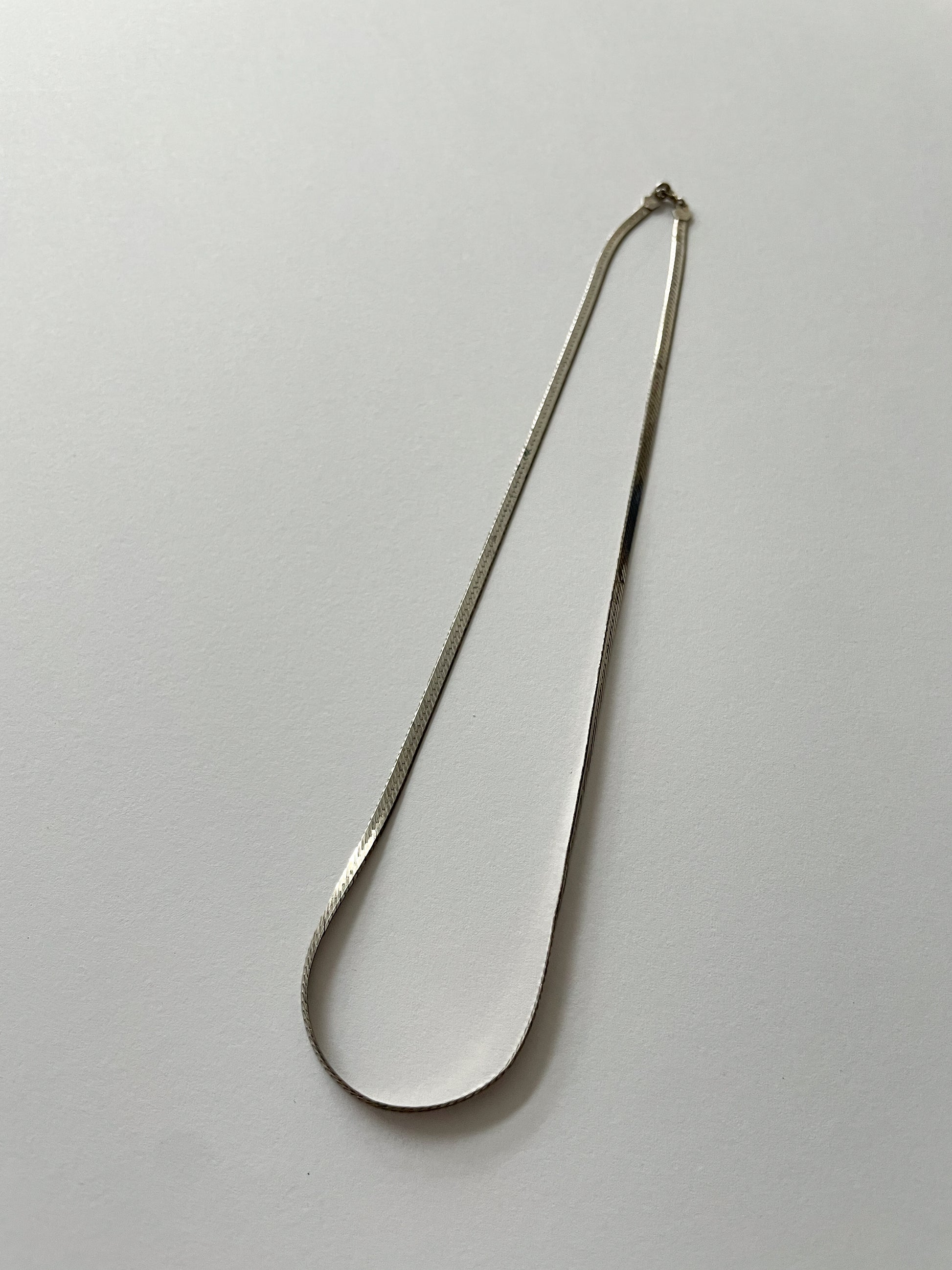 A lovely herringbone weave Sterling Silver chain. Hook / clasp closure.