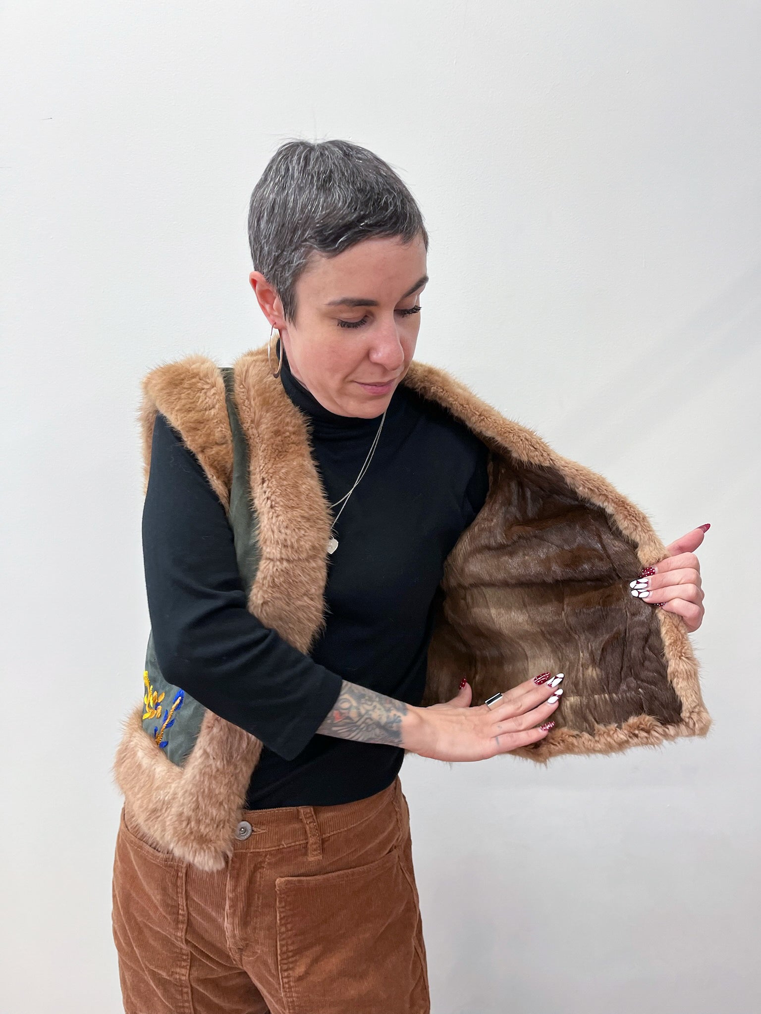 1990s Vintage Suede & Fur Embroidered Vest by Bebe Moda