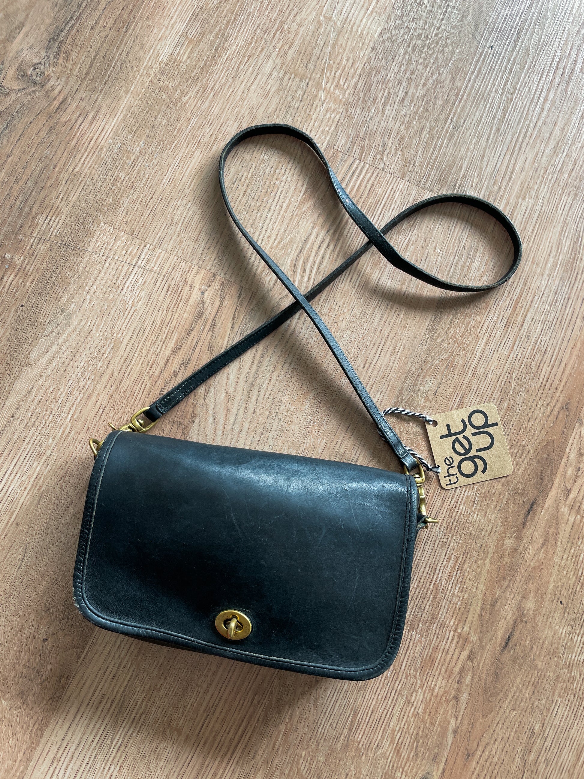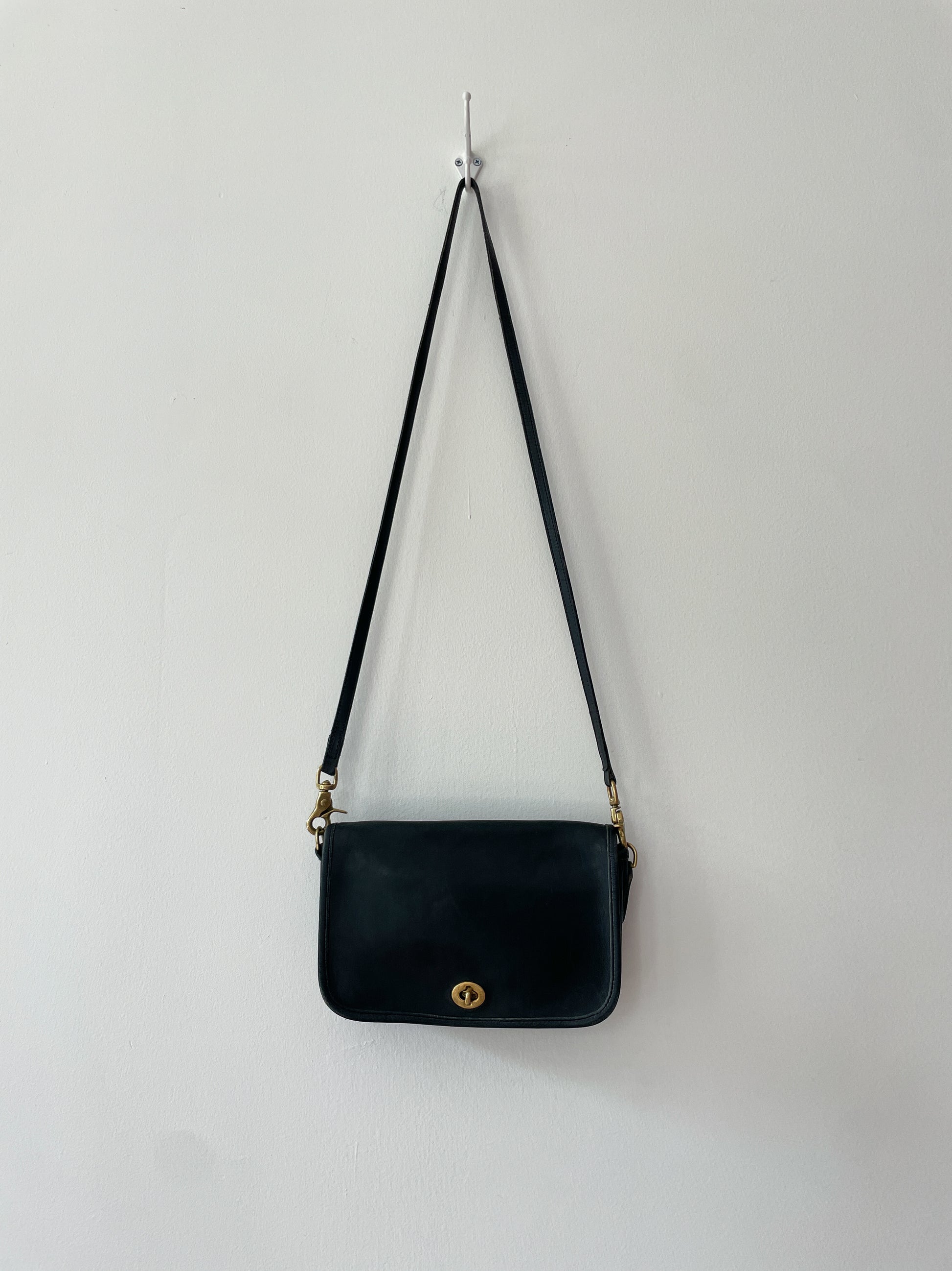Classic black Coach "Pocket Purse" style no 9755, crossbody made in June of 1994.
