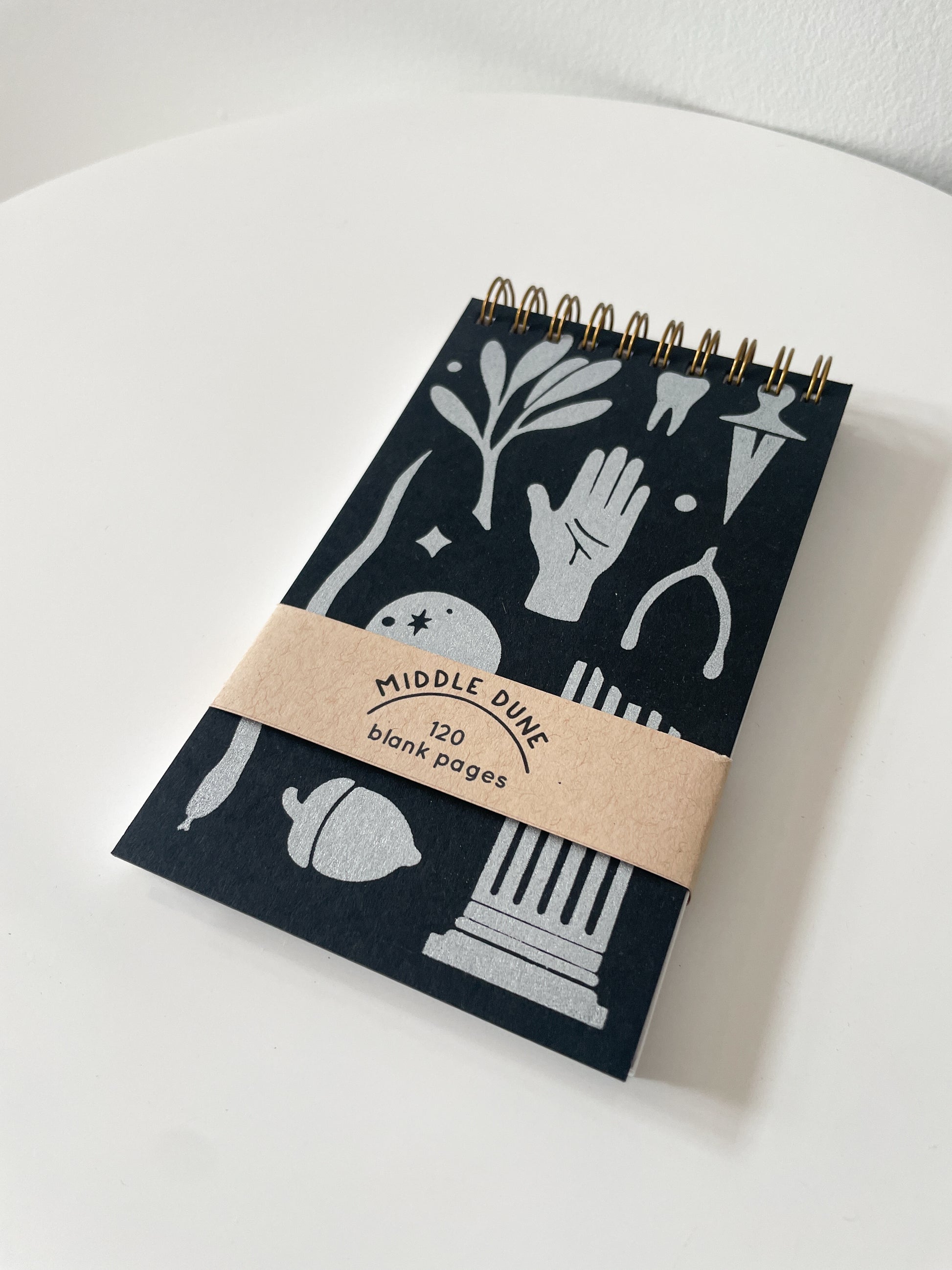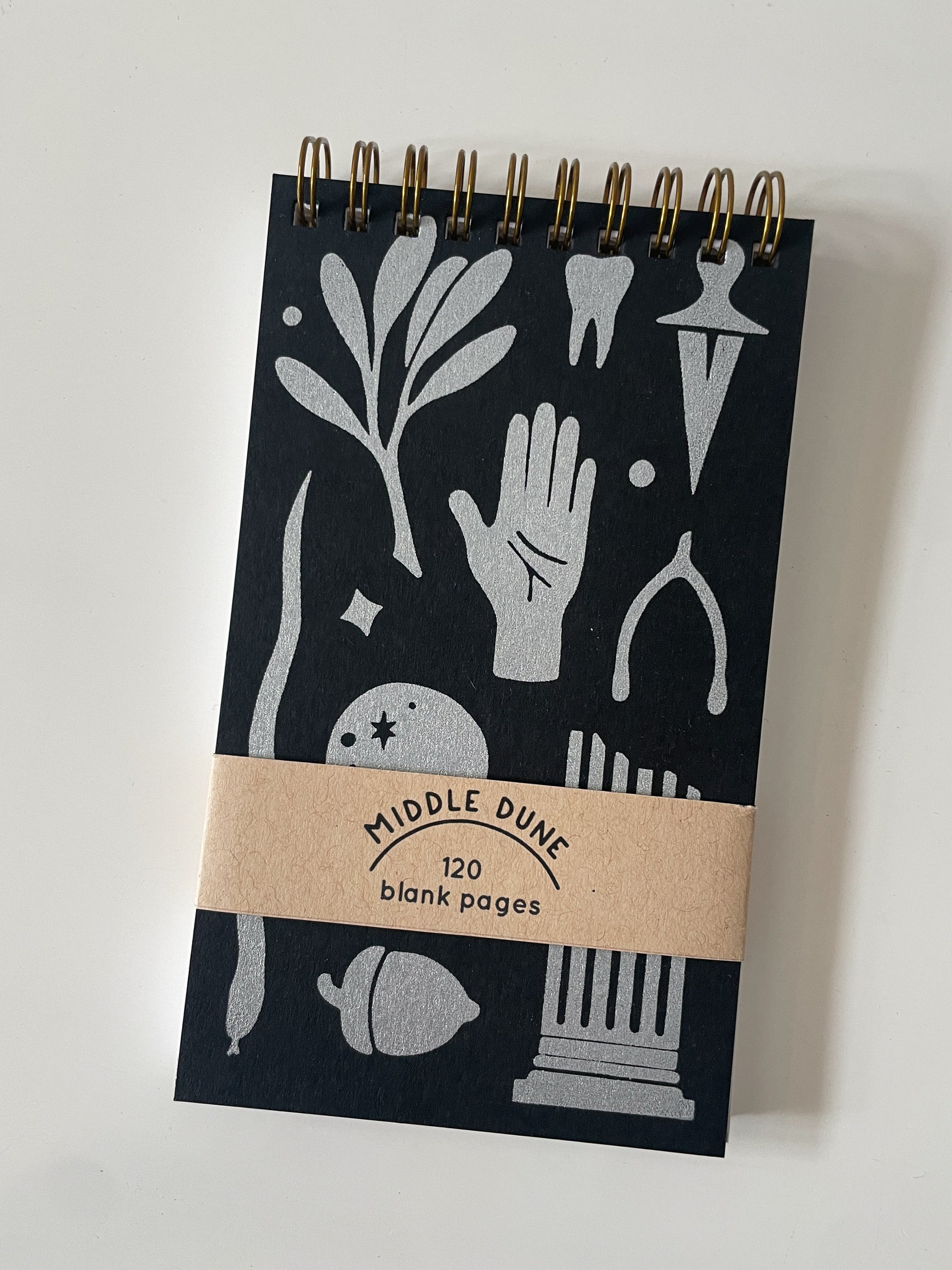 Middle Dune bound notebooks, printed and assembled by hand, are the perfect combination of rugged, practical, and good-looking. Their small format means they’re great for your desk or your bag while sturdy covers and a brass coil binding protect your pages even on the go. 3.5” x 6”, 60 blank sheets (120 pages).