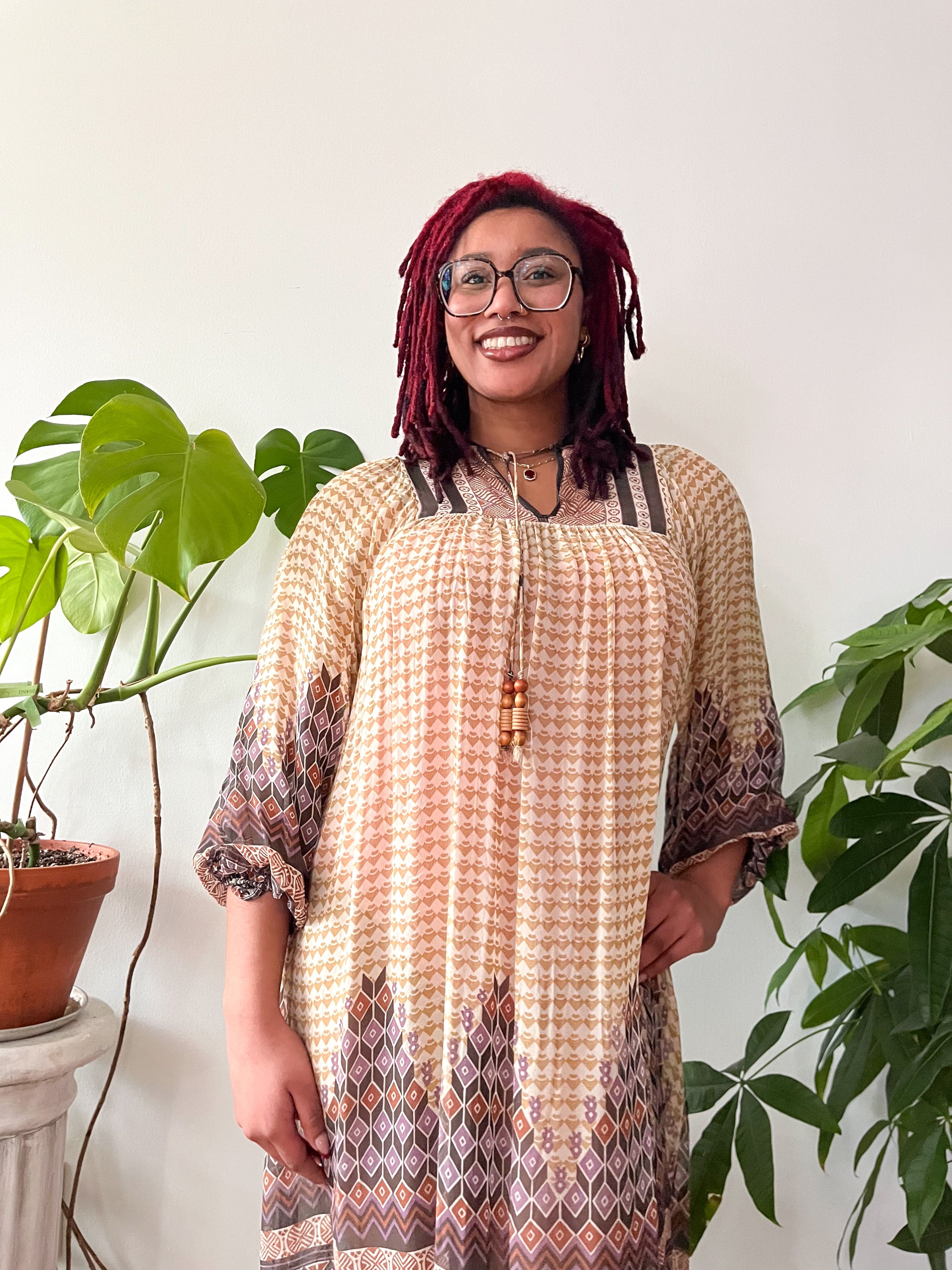 The most beautiful, light, flowy piece you'll put on your body. Neutral tones make this a 70s classic. Great worn with a belt or without, as shown (belt not included). Dress is fairly sheer, neutral skin-toned undergarments worn underneath recommended.