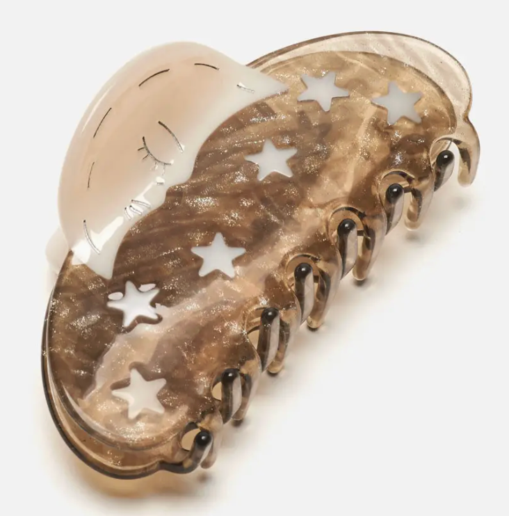 Silver Sparkle Acetate Moon and Stars Astrology Hair Claw