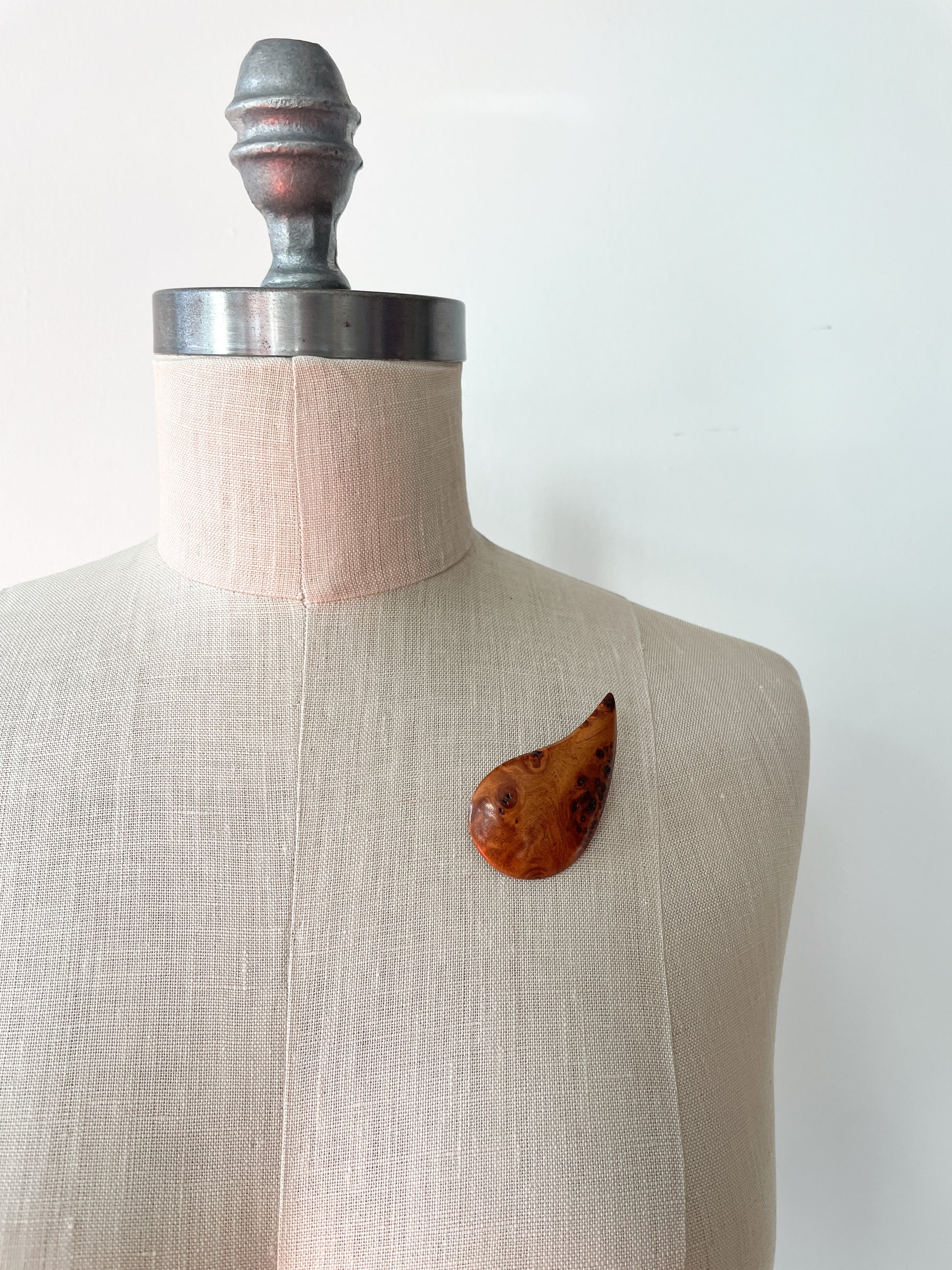 1950s Vintage Burlwood Teardrop Brooch Pin